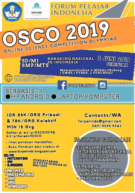 -> OSCO ini merupakan event yang menyediakan wahana bagi para pelajar di Indonesia untuk dapat berkompetisi secara online tanpa adanya jarak yang jauh.
